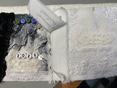 I'm continuing work on Anne Brooke's #12pagesofChirstmas book-in-a-tin project. (You can check out her projects on YouTube.) Frankly, without this stitch along it might have become a UFO at this point. Not that I've lost interest, I've just become distracted. That often happens when new projects present themselves!